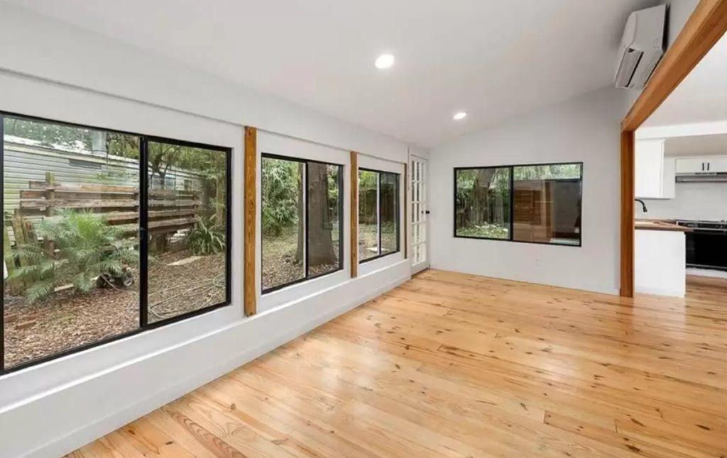 Another feature that adds to the ultra-modern feel of this 1968 mobile home remodel is the abundance of windows in the space. They help to open up the room and the natural light creates an airy and modern feel.