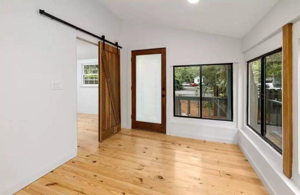Barn doors have become extremely popular over the years. Not only are they space-saving, but they also add decor style to any room. Also, because you can customize the look, they fit well with any decor you choose, including this ultra-modern look.