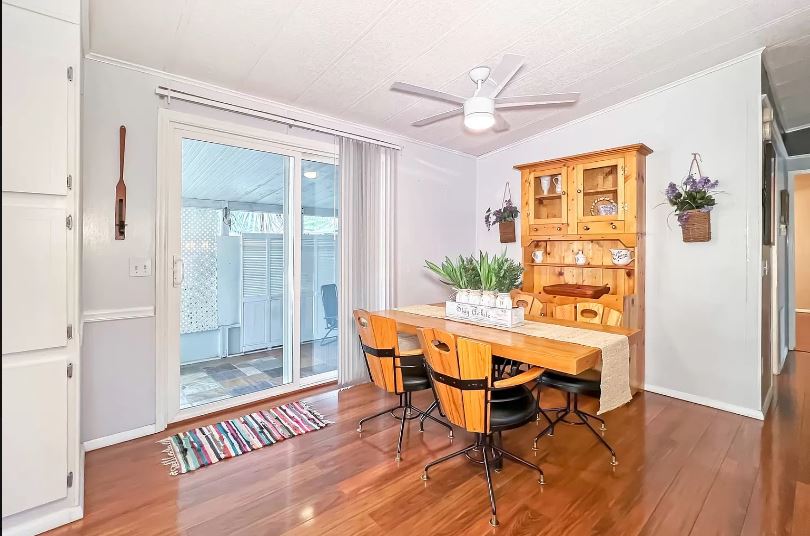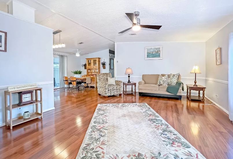 Typically when you think of a 1986 double wide you think of lots of carpet, kitchens with center island stoves, and plenty of built-ins. However, you won’t find that in this home that gives off a total Florida vibe.