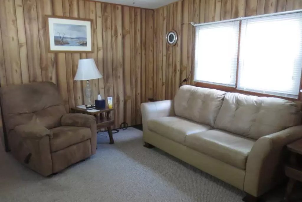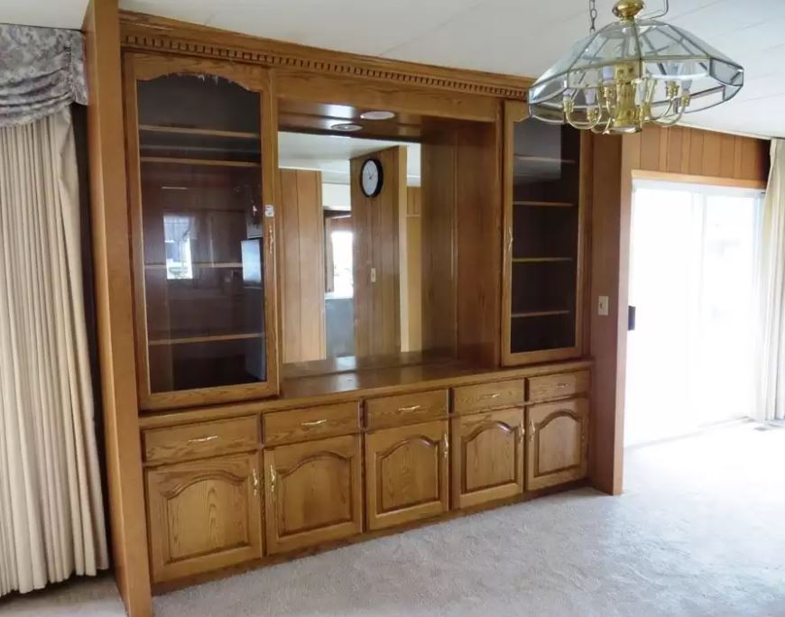 We love this 2 bedroom/1 bath mobile home listed for $32,900. At only 660 square feet it would make the perfect project home for someone who is DIY handy. The interior is full of paneling, but a fresh coat of paint would be an easy fix for that if you wanted to brighten it up. Some built-ins offer extra storage and a nice size yard that includes a carport. Also, it looks like the bathroom has recently been updated which is a plus!