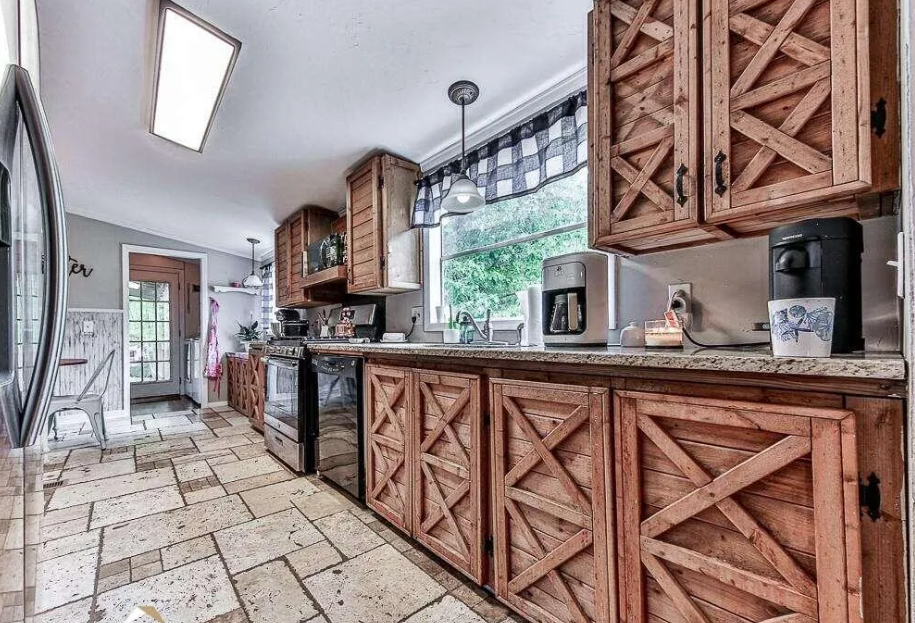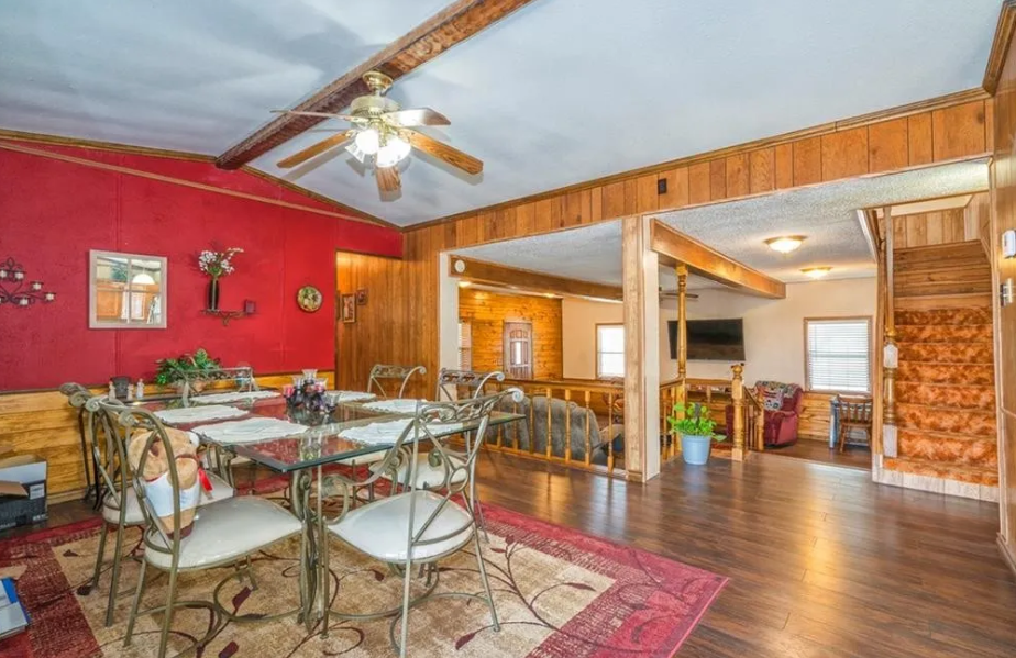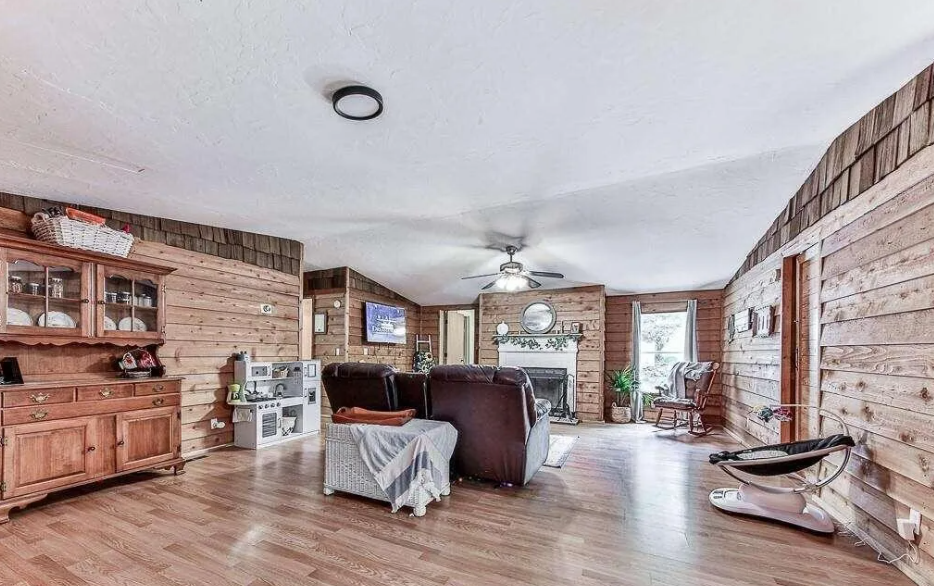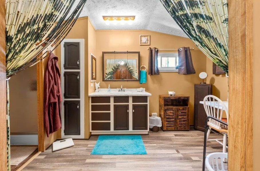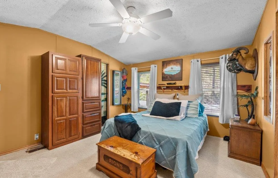 The only thing that gives this home away as a 1984 manufactured home might be some of the wallboards in parts of the home. Other than that it’s hard to tell where the mobile home starts and the addition begins. Listed for $250,000, this 3 bedroom/2 bath home is full of custom wood features that make this home a rustic masterpiece.
