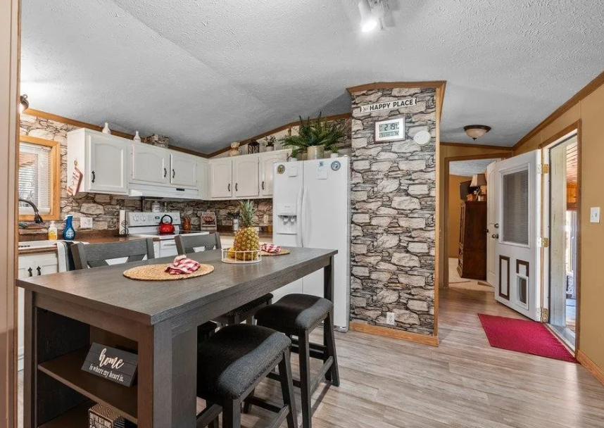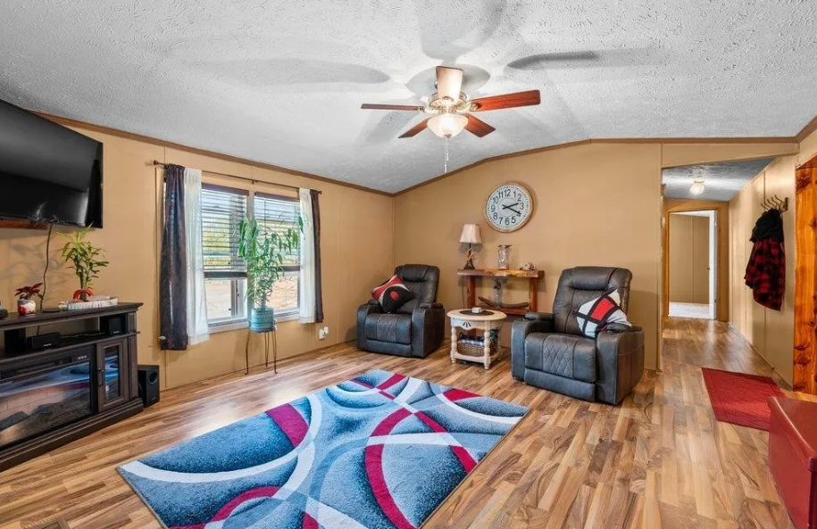 Manufactured homes with additions can serve many different purposes. The listing of this 1999 mobile home states that it includes an addition of a bonus room that is perfect for entertaining and a master suite. Priced at $249,900 this home has a great rustic look.
