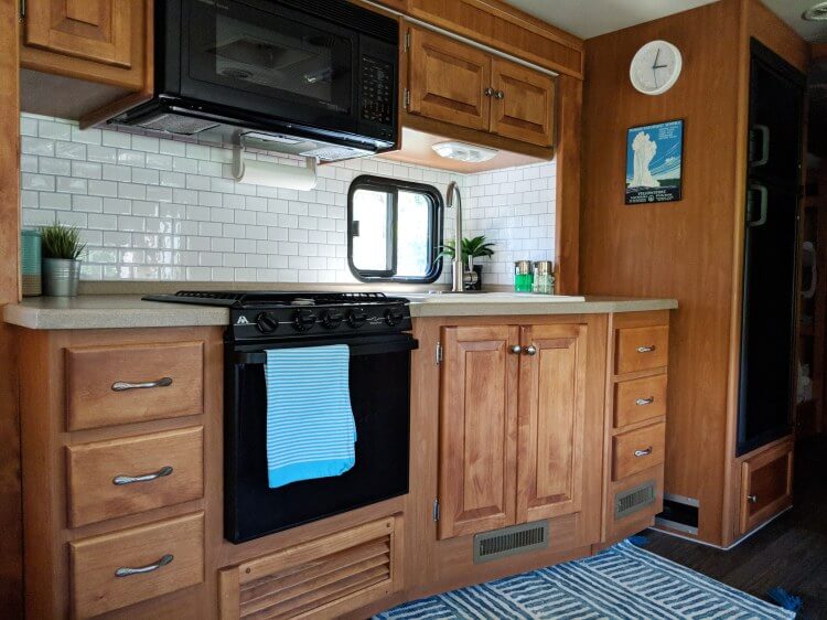Just like in your manufactured homes, adding a backsplash to your RV/Camper kitchen will give it an instant facelift. The best part? You don’t have to spend hours on this project, just find your favorite design in a peel and stick backsplash and get to work.