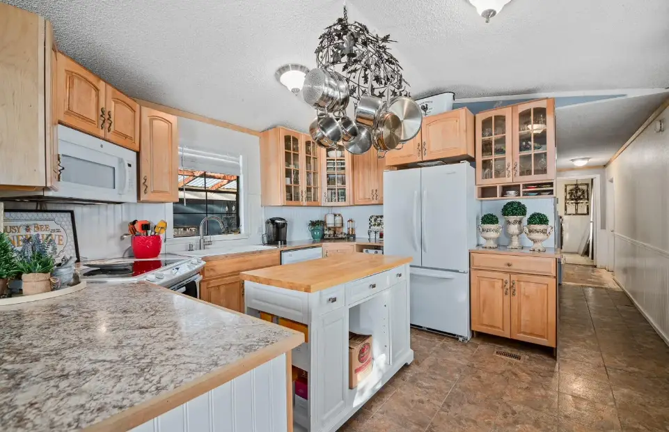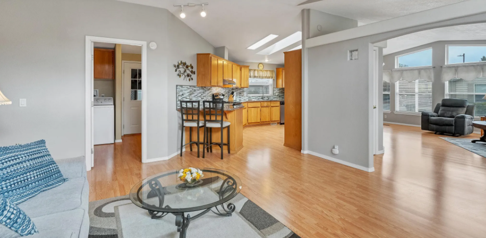 Our third find in our top manufactured homes for sale is a two bedroom/2 bath for $264,000. This home is completely move in ready and is a great example of how far manufactured home designs have evolved through the years.