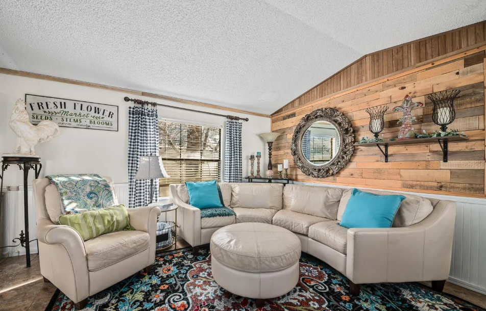 Our final home is an example of how much potential there is to be found when adding extra space to your mobile home. With three beds and 2.5 baths, this home is a triple wide with over 2100 square feet with an asking price of $520,000.