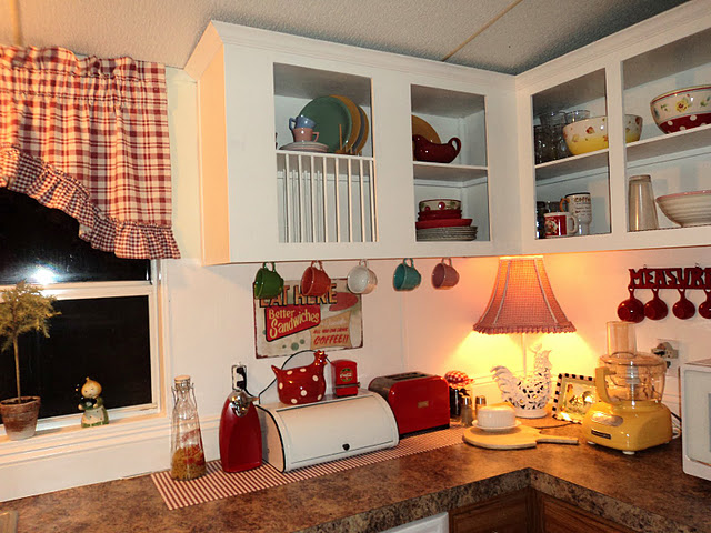 I've had such a good time going through your website. We have a manufactured home and i'm constantly changing and redoing rooms.. This article was especially interesting to me, as I see many similarities to our home.. I love her country look and especially LOVE LOVE LOVE her kitchen… Mine is also white and red and I just love the way she put hers together.. She's very talented.. I'm looking forward to future articles and features.. You do a great job with your website :o)