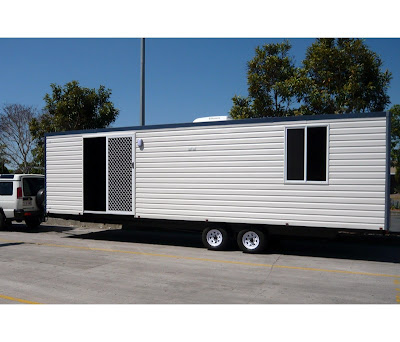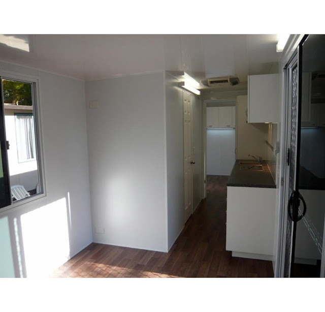 Here’s a standard looking caravan called a FlexiHome. These are used for camping mostly not permanent living. The interior is what will amaze you: