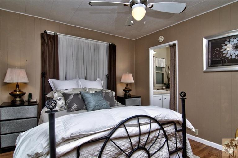 This double wide is in Rancho Mirage, CA and currently on the market. It sits in a beautiful manufactured home community and can be yours for less than 100k,