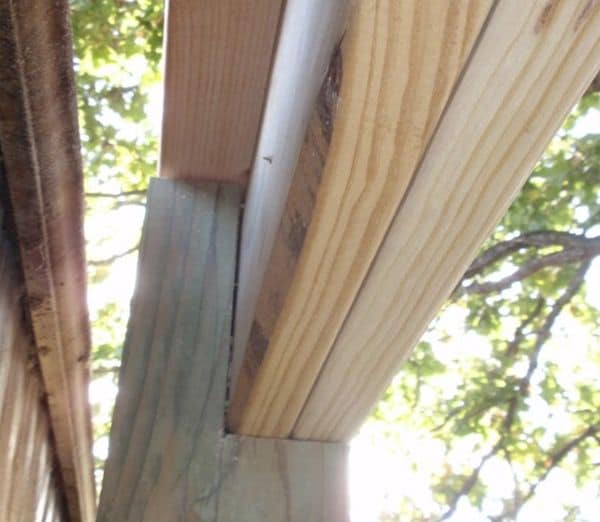 After installing the trusses, we now need to install the rafters for the deck roof.