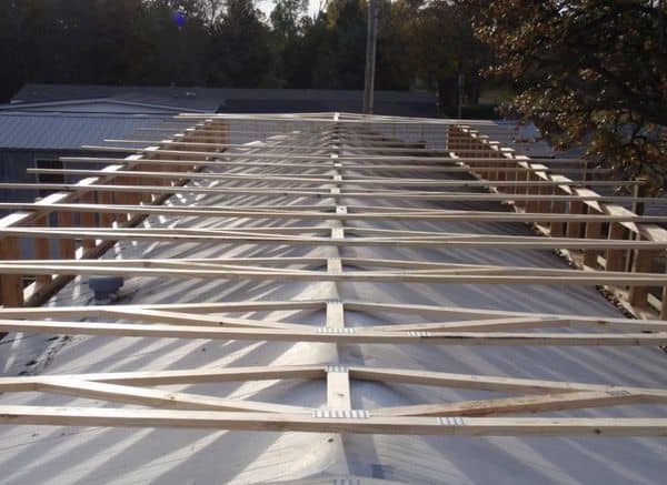 Homes with flat roofs of bowstring trusses pose a problem because they are not strong enough to withstand the weight of a new roof.