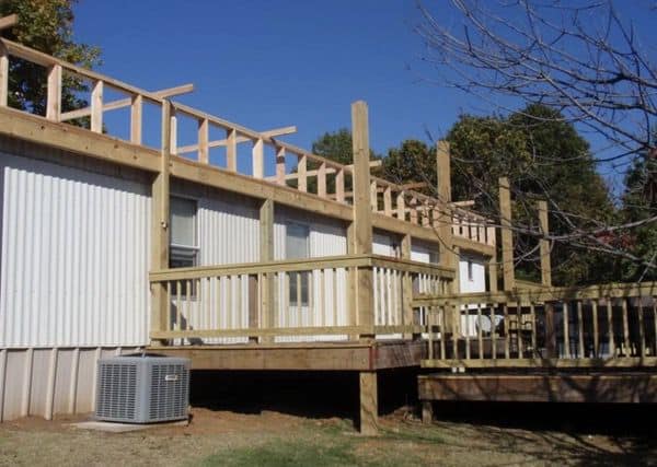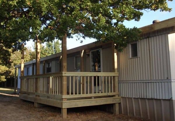The single wide mobile home sits on Lake Eufaula in eastern Oklahoma. It has had a large deck on the front of the home for several years, but the homeowner wanted more shade and more protection for the home.