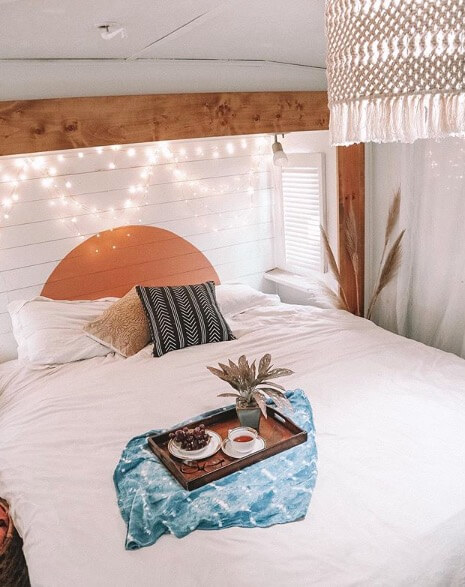 The Japanese style pergola above is an amazing addition to the RV. It creates a perfect area for container gardening as well as a covered outdoor living space.