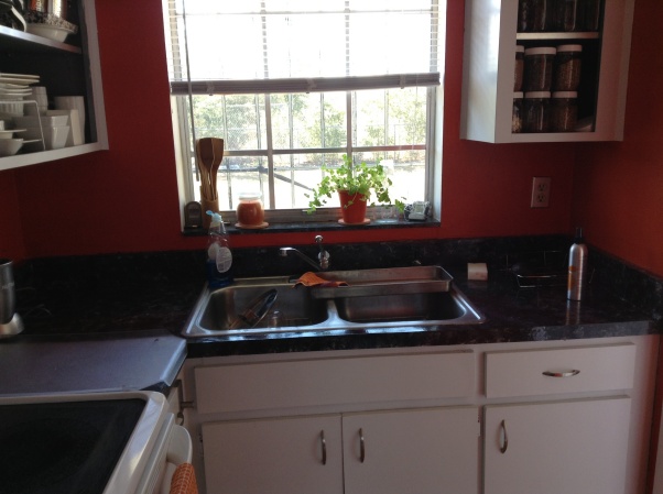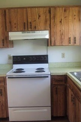 Cybergypsy wrote that they painted the cabinets and the countertops. Paint is our best friend in any makeover.