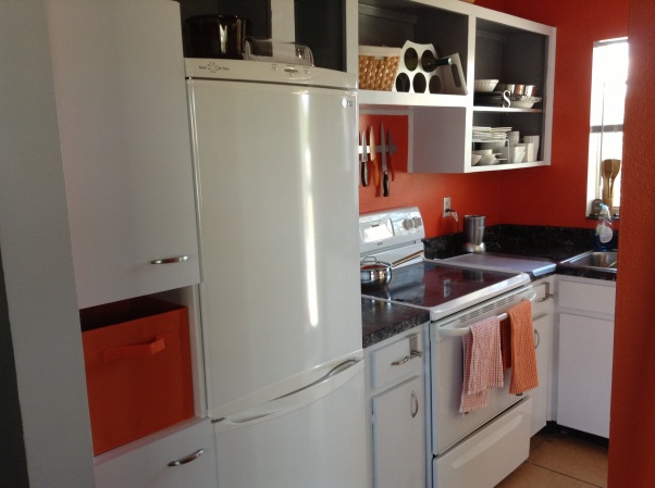 Who would’ve thought to remove the cabinet doors? Not me, but I may just try it! It certainly adds a modern storage system look and the convenience has got to be great.