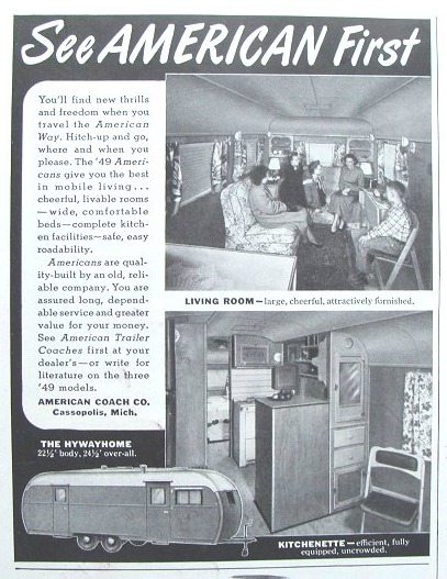 With the exception of the last ad you showed, most of the ads you showed from the early 30s/40s seem to be what I would call "trailer tents" so to say. The ads even extort the ability to "see the world" and live in comfort as you do so. That said, was there such a family that made slightly larger mobile homes in AL that did decide to make money on the returning Vets and build different forms of housing for them to purchase and set up "quicker" and "cheaper" than other housing of the time?