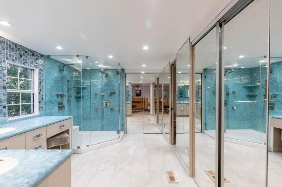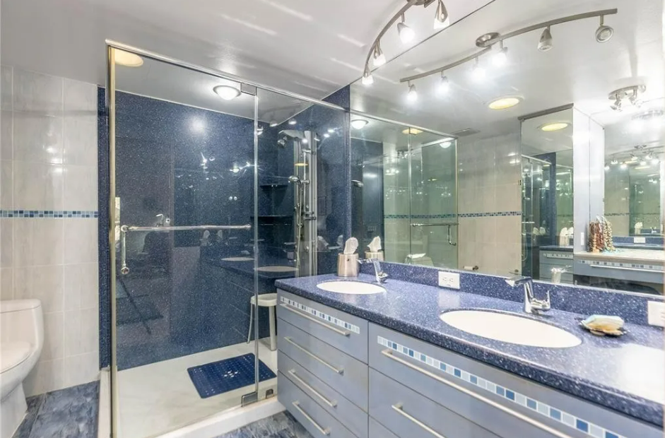 Both of the baths include double vanities, and extra large showers with multiple shower heads to create a spa experience.