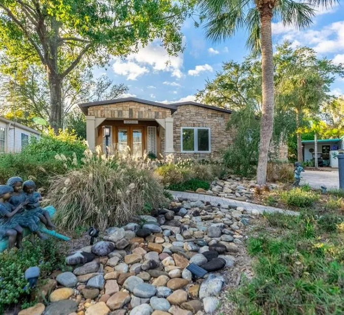 It’s no surprise that while searching for our monthly for sale post we came across this exceptional 1982 mobile home in Florida. More and more homeowners are taking older mobile homes and transforming them into masterpieces. From the stone exterior to the exquisite interior this home is a must-see, and full of remodeling ideas you can use in your own mobile home.