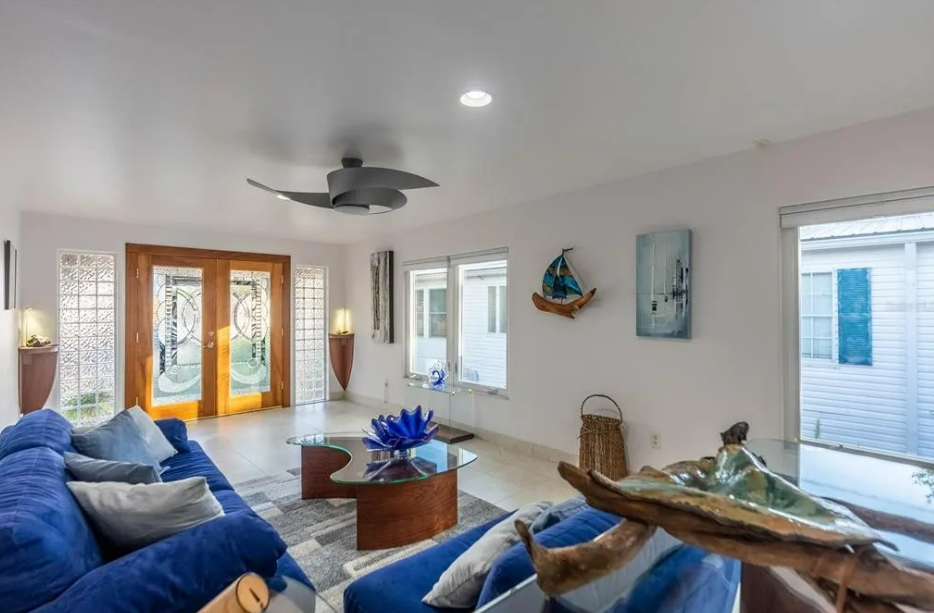 First, let’s talk about the updates that were done to make this 1982 mobile home ready for those nasty Hurricanes that Florida is known for. Over 2000 hurricane brackets and plates are in the roof truss system, piers, and walls. 2014 saw the replacement of the roof. At the time of the Sellers’ remodel, permits were obtained to reconstruct the house in accordance with the most recent hurricane standards and building codes. These standards included engineering for hurricane tie-downs and high-impact windows, doors, and all structural areas. This home is as Hurricane ready as one can be.