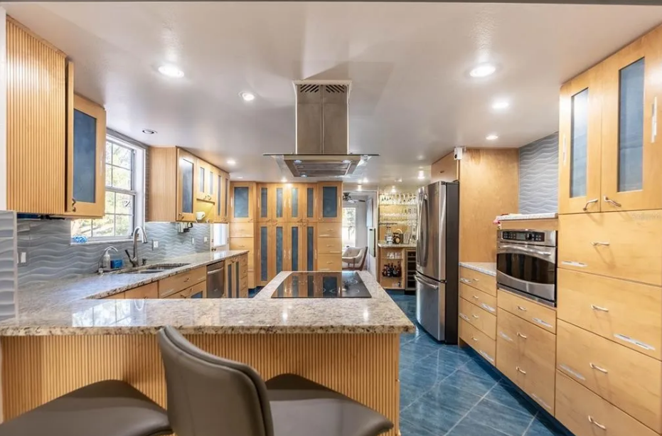 The kitchen is a dream that includes soft-close custom cabinets and drawers, and a wet bar that would make Bing Crosby jealous!