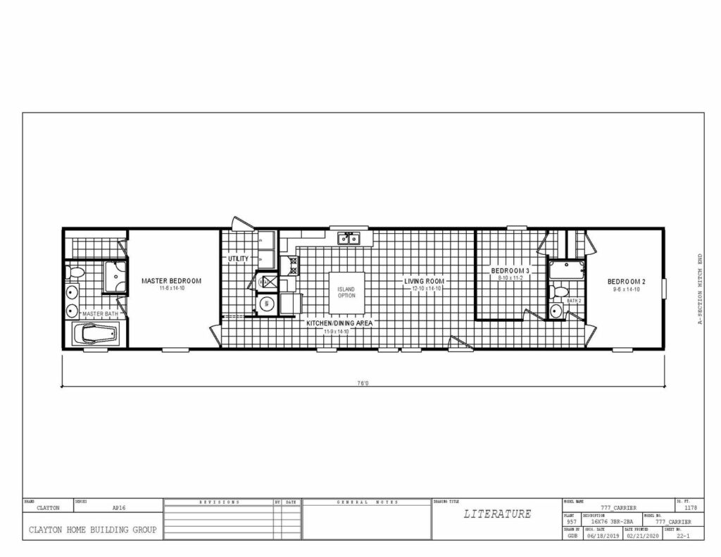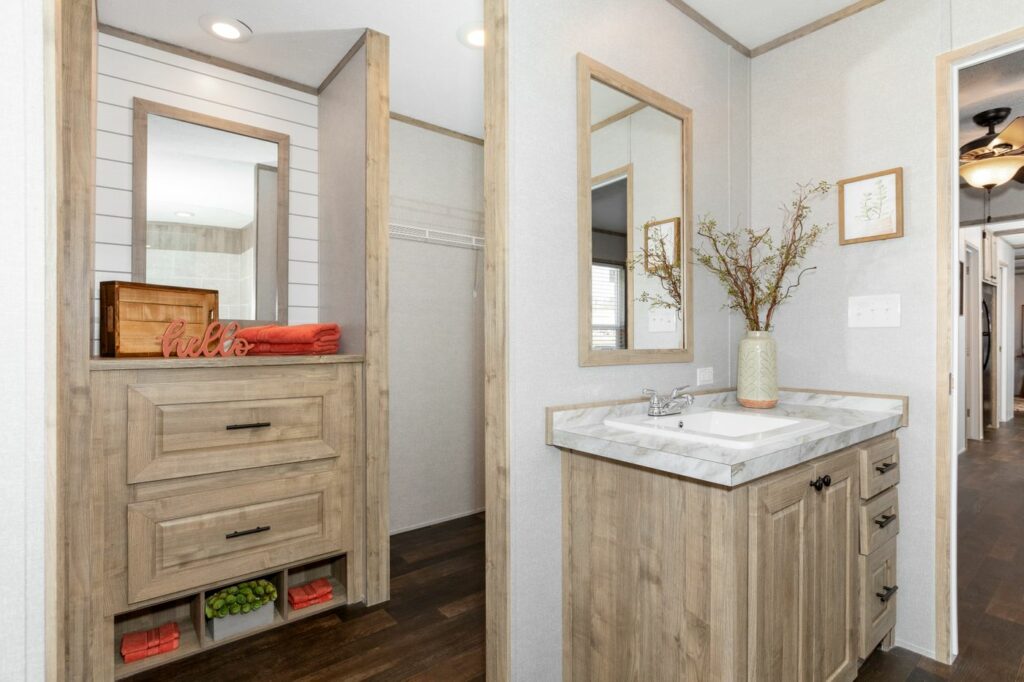If setup space is an issue, the 1959 from Oakwood homes may be just the fabulous manufactured home you are looking for. At 1216 square feet and with a base price in the low $100’s this home offers 3 bedrooms, a split floor plan, and is an affordable fit for a smaller piece of property.