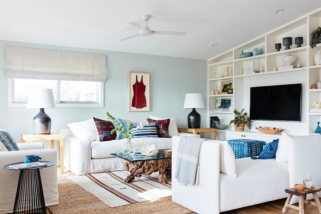 So, with a plan in mind, she reached out to famous interior designers One Kings Lane and they went to work. Going for a beachy, relaxing vibe, she knew she wanted lots of blue, not too many patterns, just a simple space to relax in. Lucky for her One Kings Lane was able to create just the look she was going for.