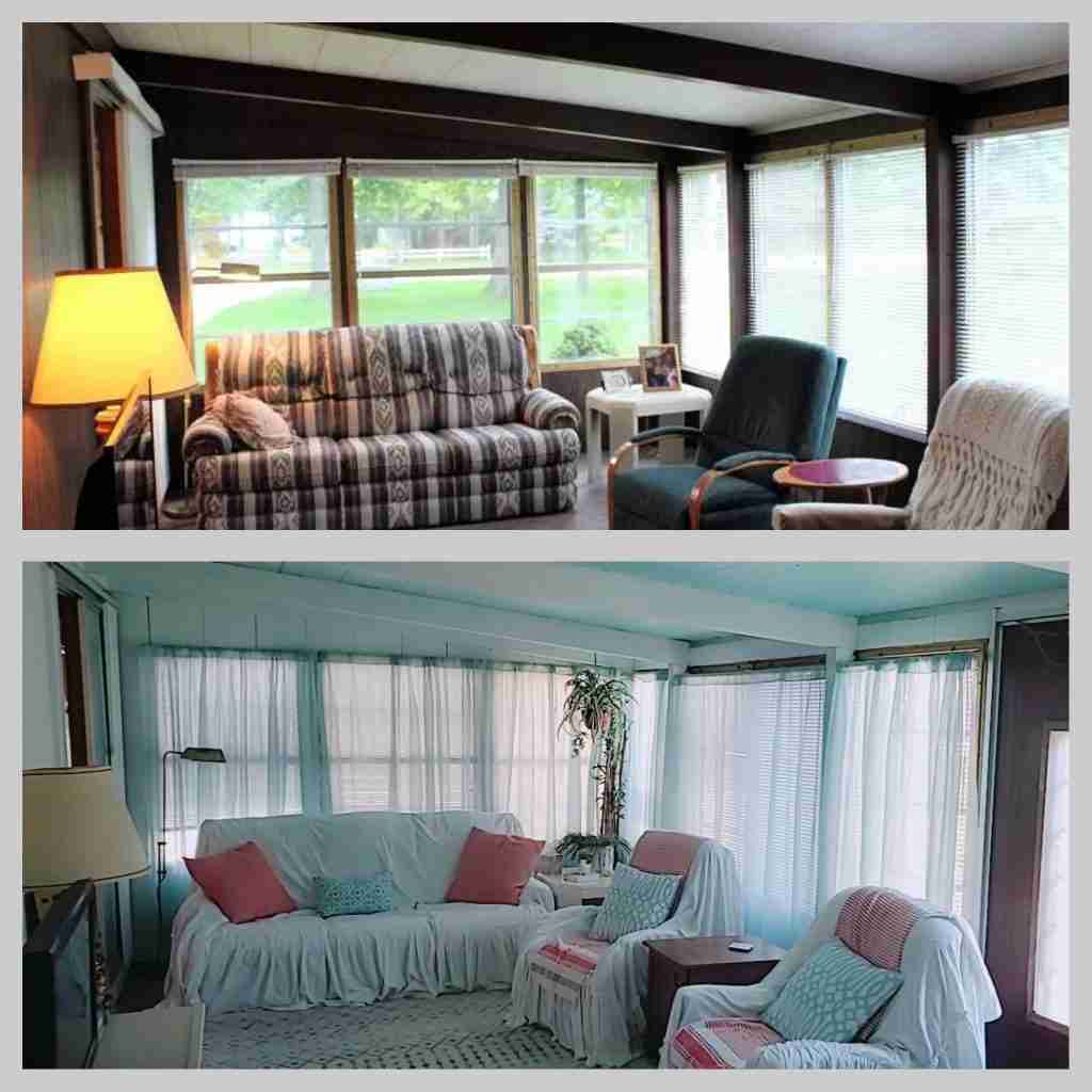 Next, Pamela, a member of our Facebook group shared her before and after of her beach cottage. Her paint inspiration came from her favorite place to visit each Fall, Mackinac Island. This looks like the perfect spot for a getaway!