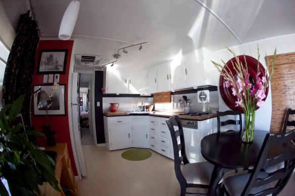 Try to see your space as just a space, whether it’s a trailer, a loft, a studio, etc. Don’t keep your vision narrow, adapting to what you have seen or what you expect to see for that type of space. A trailer is just four walls (shaped in a long, narrow rectangle, I know), and you can do what you like within those walls.