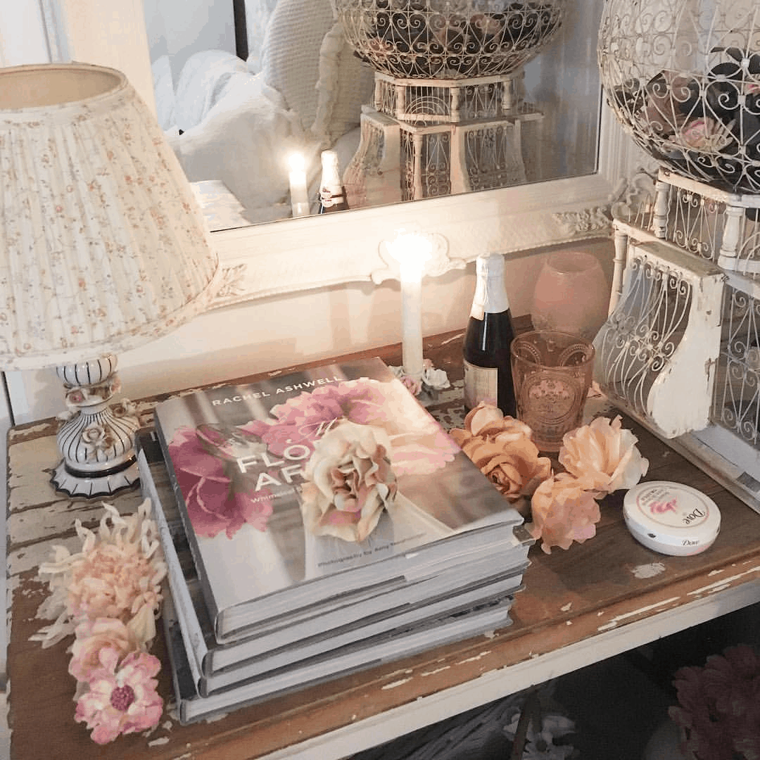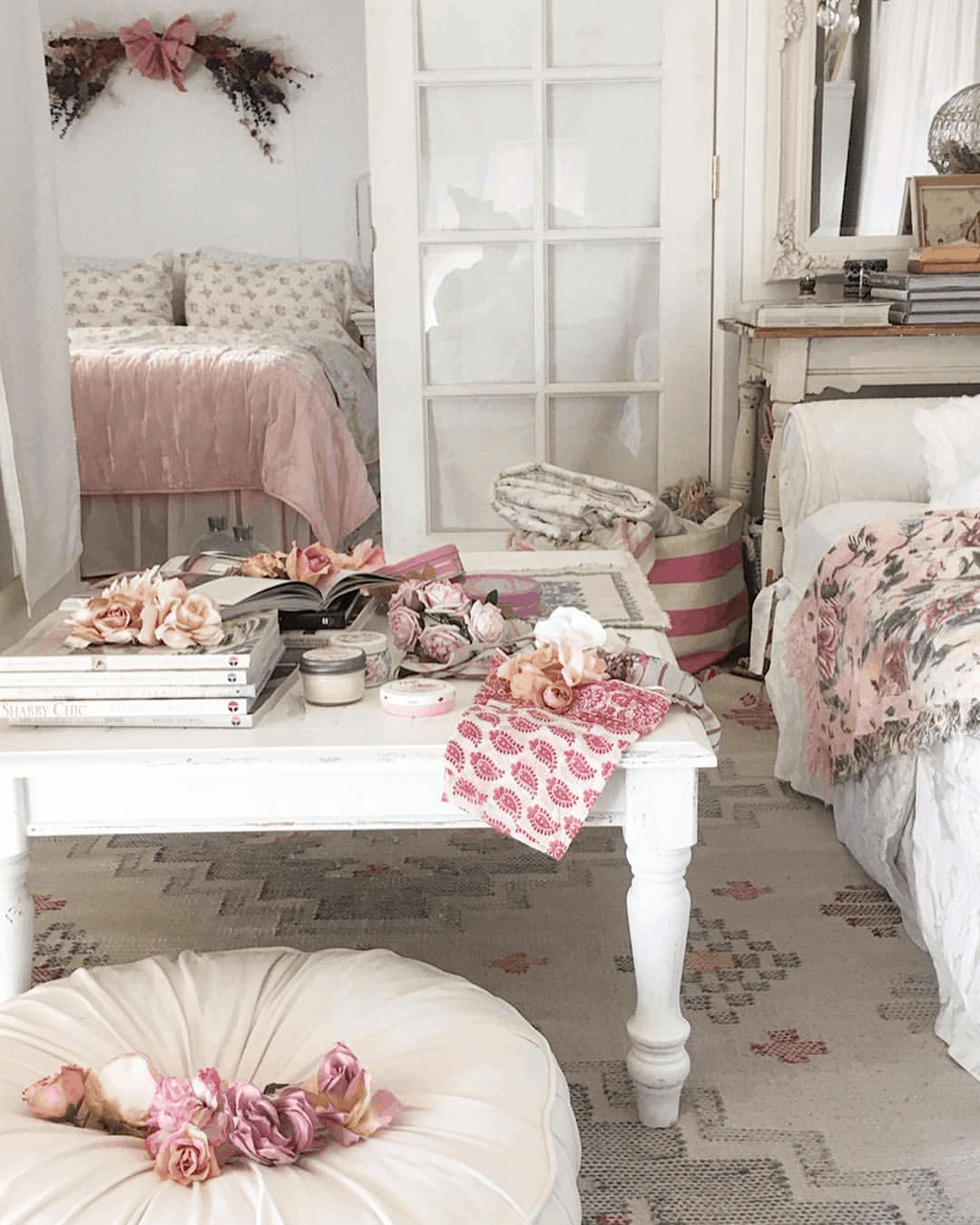 Rita Lavoe (@ritalavoe) shares her beautifully romantic shabby chic mobile home with her followers on Instagram.