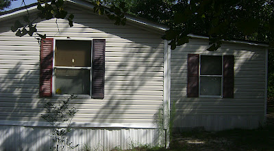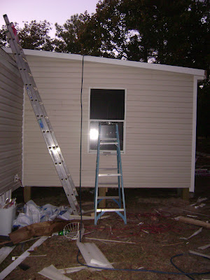 This photo is of the outside of the addition during construction. They had it underpinned and red shutters put up to match the front of the home. Rebecca is currently hard at work on their master bedroom. She has promised to let us see it when she gets it finished it!