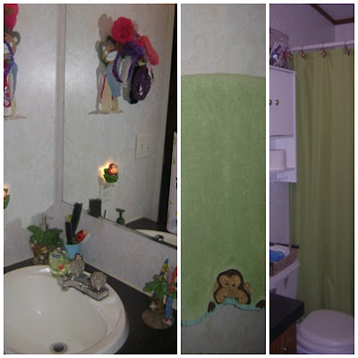 Here is the bathroom their four gorgeous children share. They have already taken up the carpet in their bathroom as well as the hallway and replaced it with linoleum. (I will never understand carpeting in a bathroom! Not ever!)